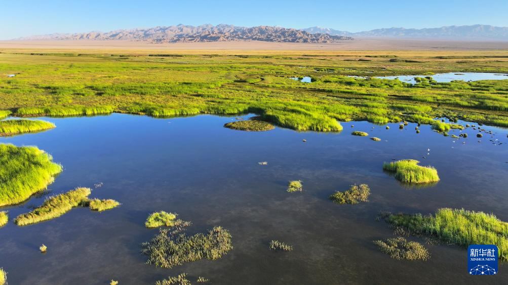 7月31日拍摄的大苏干湖湿地景色(无人机照片)。新华社发(高宏善 摄)