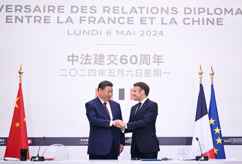 当地时间5月6日上午,国家主席习近平应邀在巴黎爱丽舍宫同法国总统马克龙、欧盟委员会主席冯德莱恩举行中法欧领导人三方会晤。