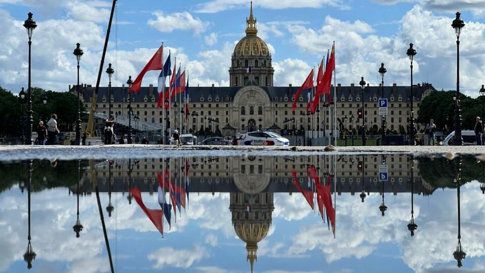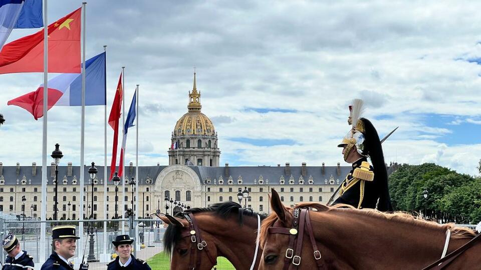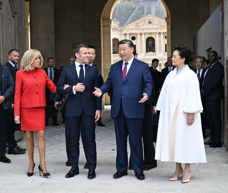 五月的巴黎,风和景明。塞纳河畔,荣军院金色穹顶熠熠生辉,五星红旗和蓝白红三色旗迎风飘扬。