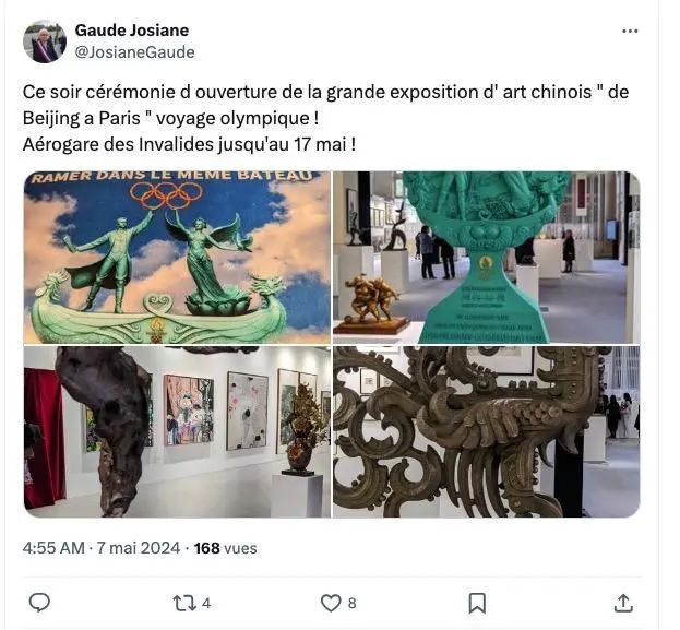 开幕式后,法国文化部长拉茜达·达蒂、法国国家奥林匹克和体育委员会主席大卫·拉帕蒂恩、巴黎第七区副区长乔西安·高德、法国前总统奥朗德办公室顾问让-马尔·坎巴塞雷等发布推文,高度赞赏此次艺术大展。