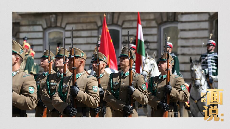 当地时间5月9日上午,习近平主席出席匈牙利总统舒尤克和总理欧尔班在布达王宫内庭共同举行的隆重欢迎仪式。
