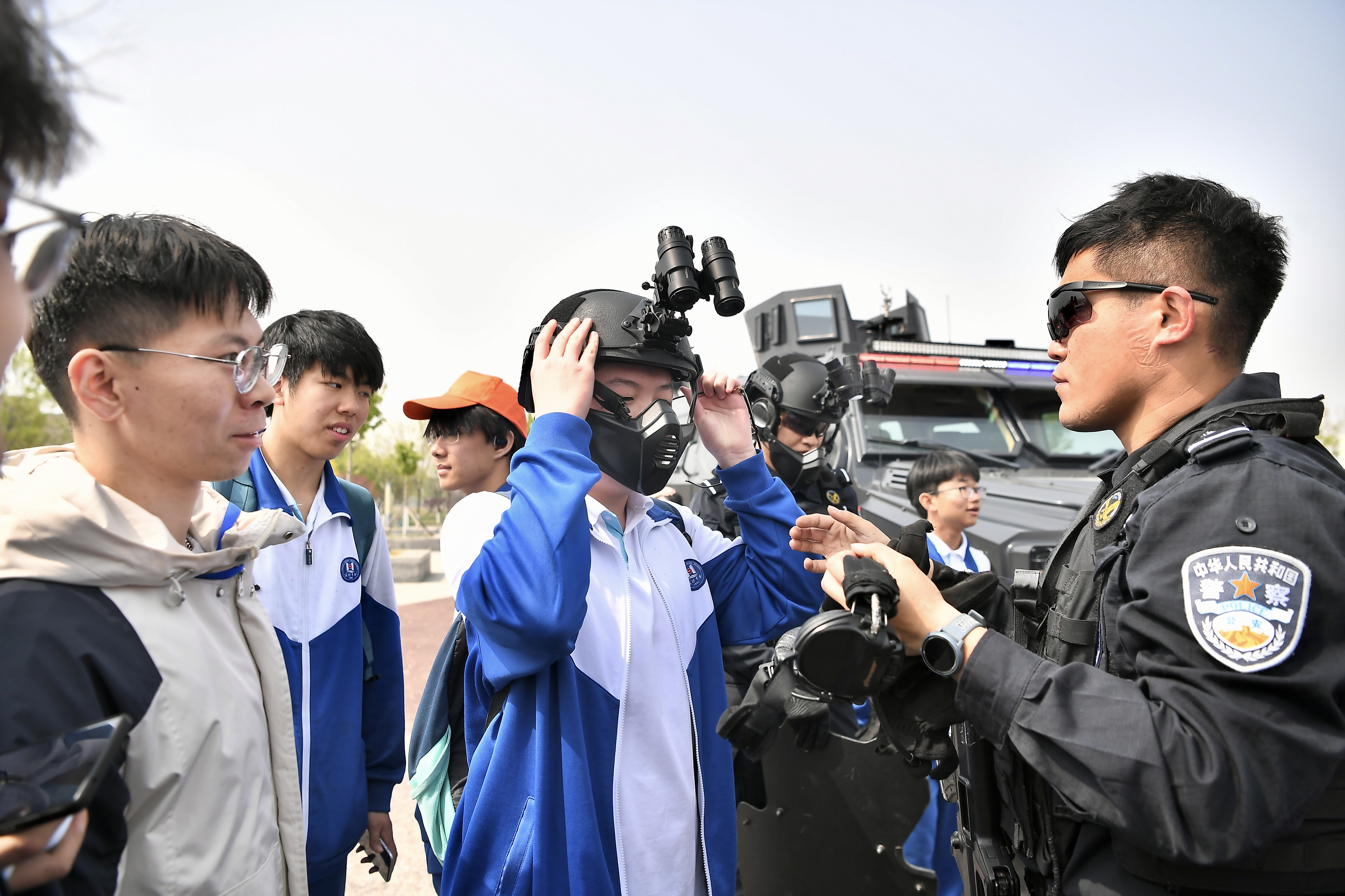 大学生试戴侦查设备 供图 天津市公安局