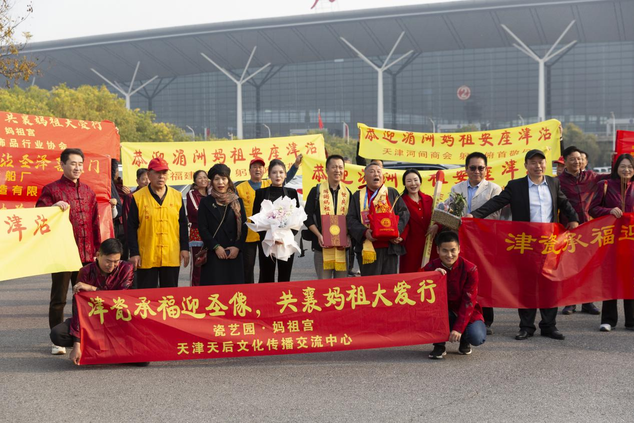 11月4日下午2时40分,天津滨海国际机场内氛围庄重而热烈。莆田商会等机构代表手持醒目欢迎标语,早早在此等候——天津瓷艺园创始人李志文与蔡源涛二人,正护送着珍贵的湄洲祖庙妈祖圣像抵达津门。这尊承载着“立德、行善、大爱”千年妈祖精神的圣像,将在天津瓷艺园永久安坐供奉,为底蕴深厚的津沽大地再添文化瑰宝与精神滋养。