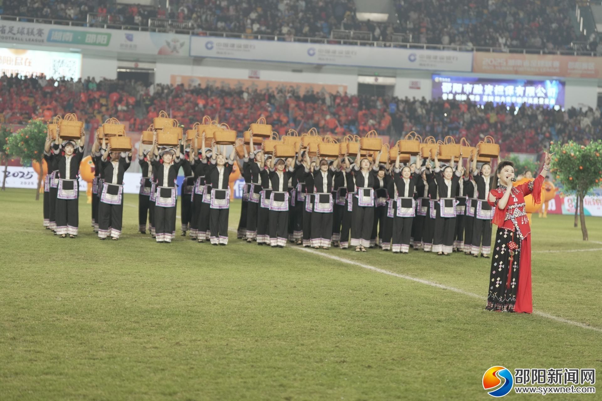 “又见脐橙黄……崀山风光胜天堂,脐橙的故乡!”11月23日晚,邵阳市体育中心激战正酣的“湘超”赛场上,响起了《崀山脐橙香》的动人旋律。