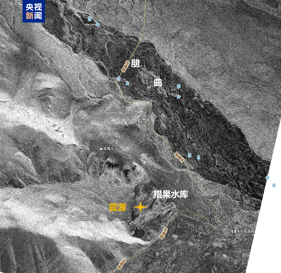 △1月7日10时43分西藏定日县地震局部遥感影像图(雷达影像)