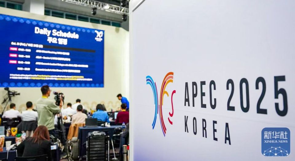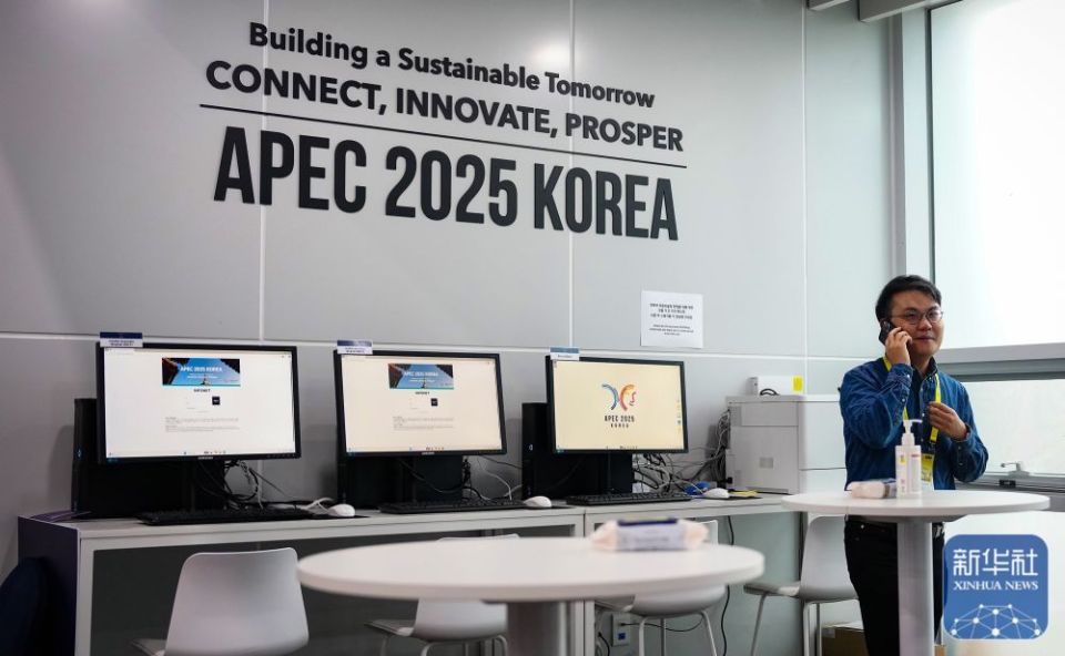 当地时间10月31日上午,亚太经合组织第三十二次领导人非正式会议第一阶段会议在韩国庆州和白会议中心举行。