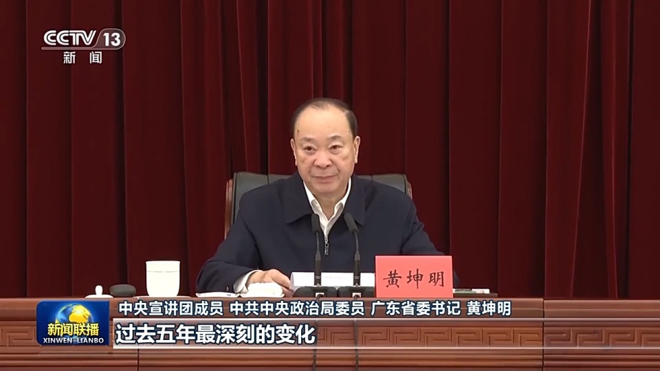 中央宣讲团成员 中共中央政治局委员 广东省委书记 黄坤明:在习近平总书记、党中央坚强领导下,过去五年最深刻的变化,就是中国式现代化迈出新的坚实步伐,强国建设阔步向前、民族复兴势不可挡,全党全国各族人民要坚定拥护“两个确立”、坚决做到“两个维护”。