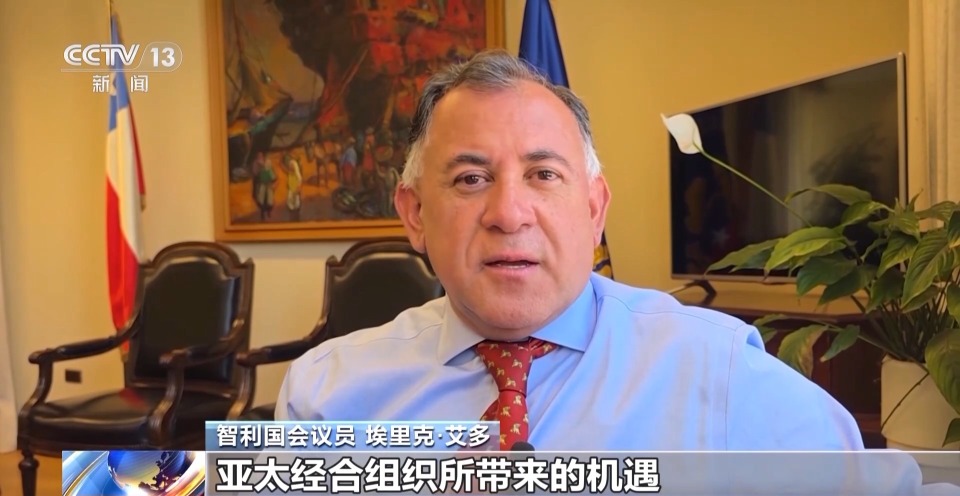 智利国会议员 埃里克·艾多:亚太经合组织所带来的机遇,在于维持一个开放的全球贸易体系,这也为智利开拓新市场带来了机会。中国在科技、贸易、能源以及人工智能等领域,都取得了显著发展,我们应当利用这种经验。中国所发挥的作用,也与智利人民的愿望相契合。中国提出的构建人类命运共同体理念,正是意味着经济的发展,生产力与技术的提升,应该惠及地球上的每一个人。