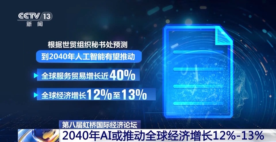 作为世贸组织本年度的旗舰出版物,《2025年世界贸易报告》围绕“使贸易和人工智能共同惠及所有人”这一主题,深入剖析了人工智能与国际贸易之间的复杂关系。报告提出,根据世贸组织秘书处预测,到2040年人工智能有望推动全球服务贸易增长近40%,全球经济增长12%至13%,但也可能加剧现有的经济和技术鸿沟。