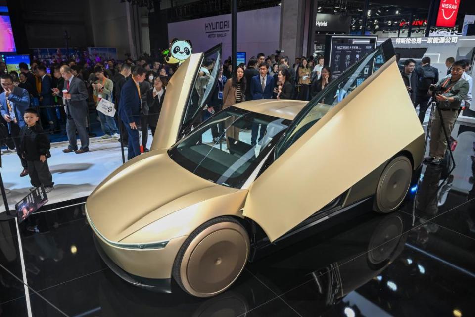 11月6日,这是特斯拉公司展台上展出的特斯拉Cybercab赛博无人驾驶电动车,这是该车型的亚太首展。新华社记者 陈浩明 摄