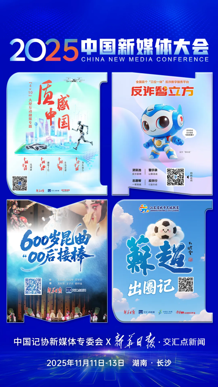 2025中国新媒体大会将于11月11日至13日在湖南长沙召开,中国记协新媒体专业委员会各成员单位纷纷推出“联名海报”为大会预热。