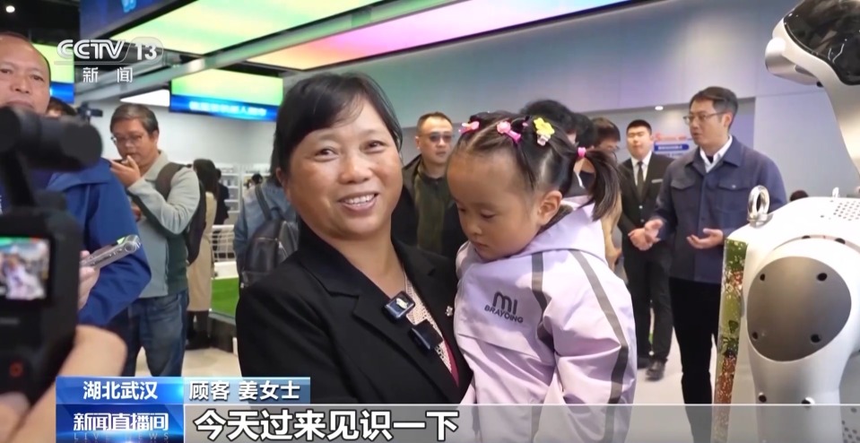 在位于光谷创新天地的人形机器人7S店,17款机器人各展绝活,有的击鼓起舞,有的踢球挥拳,还有的化身迎宾员、售货员,与观众亲切互动。