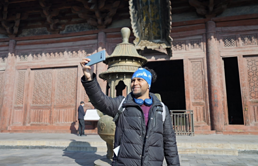 On the morning of the launch day, the overseas vloggers first arrived in Shuocheng District and visited Chongfu Temple — a National Key Cultural Relics Protection Unit known as the “art palace of the Jin Dynasty.” First constructed in the second year of the Linde reign of Emperor Gaozong of the Tang Dynasty (665 AD), this millennium-old temple is famous for the “Five Wonders of the Amitabha Hall”: the inscribed plaque, sculptures, murals, carved doors and windows, and glazed ridge decorations. It stands as a treasure of existing architectural art from the Liao and Jin dynasties in China. The vloggers experienced Chinese culture through engaging activities such as the ancient game of pot-throwing, poetry-matching, and collecting cultural pass stamps. They lingered in the Amitabha Hall, deeply impressed by the elaborate architectural details and profound cultural heritage. Ukrainian vlogger Karyna Kovalevska sighed, “Stepping into Chongfu Temple feels like traveling through the ages. The temple’s serenity and the exquisite artistry let me experience the unique charm of Chinese culture.”