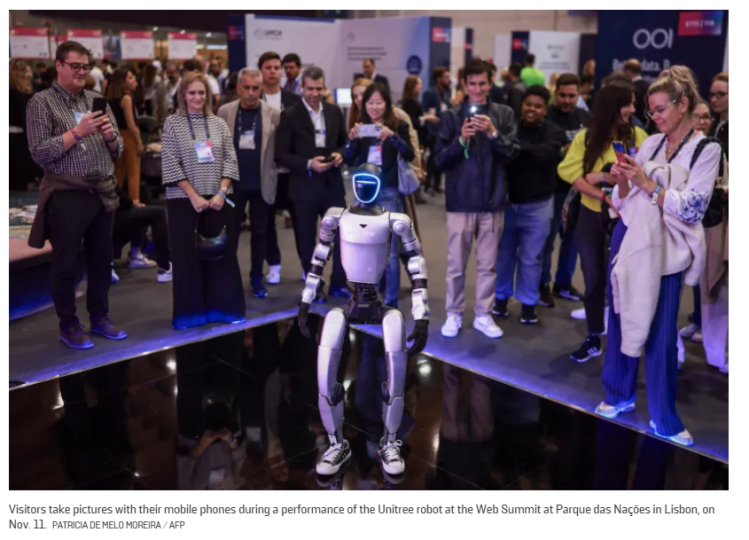 文章注意到,网络峰会期间还特别设立了“中国峰会”,受到参与者的高度关注。数百人参加了该活动,开场一小时内大部分时间活动现场都“仅有站立的空间”。两个中国产人形机器人带来的霹雳舞表演吸引了在场观众的层层围观,观众们还纷纷拍下机器人跳舞的视频。