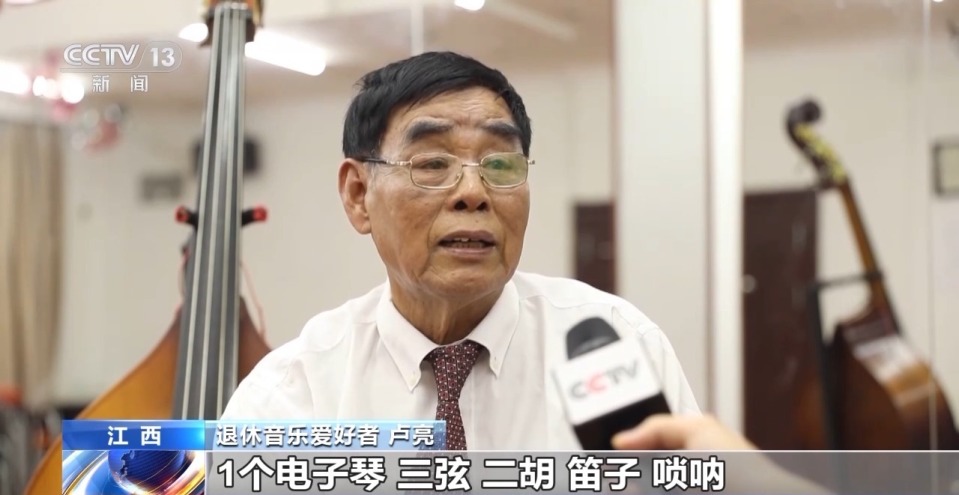 退休音乐爱好者 卢亮:买了5把贝斯,4个大提琴,1个扬琴,1个电子钢琴,1个电子琴,三弦、二胡、笛子,唢呐。花了四五万块钱,想玩就是要投入、投资。