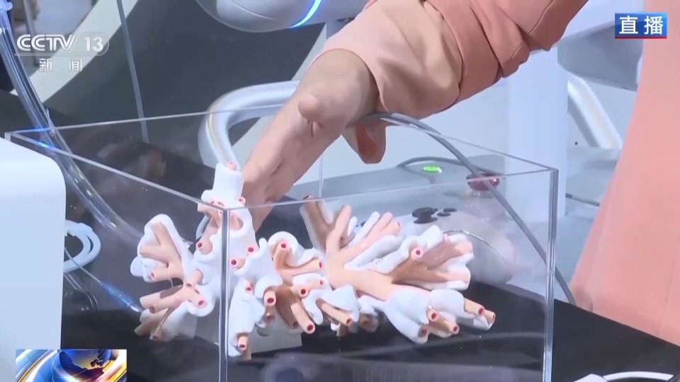 眼前这个类似珊瑚礁的模型,其实是人体肺部的三维结构。这台机器所展示的是针对肺部实施的微创手术解决方案。