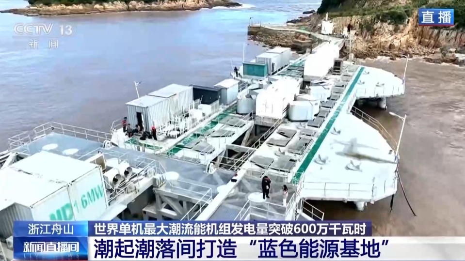 海洋能是重要的绿色可再生能源,潮流能,是我国重点推进规模化应用的海洋能之一。近日,位于浙江舟山的世界单机最大潮流能机组,发电量突破600万千瓦时。这座世界上首座海洋潮流能发电站,究竟怎样输送“蓝色电力”?跟随记者的镜头,一起去看看潮流能如何开发利用。