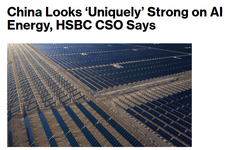 彭博社近日报道指出,在全球人工智能(AI)竞赛全面加速的背景下,“能源”正在成为左右竞争格局的关键因素。报道援引汇丰控股集团首席可持续发展官朱利安·温策尔(Julian Wentzel)分析称,中国凭借在清洁能源领域的领先布局,在支撑人工智能高速发展的能源体系建设上,具备了“其他国家难以复制的独特优势”。
