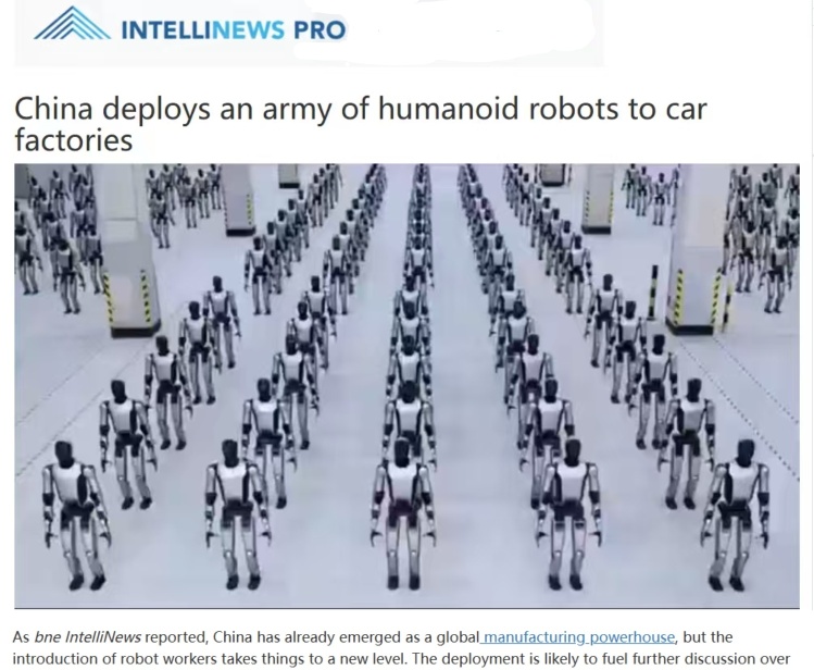 文章关注到,由深圳一家科技公司开发的数百台机器人,目前已获多家大型汽车工厂采用。这些在研发领域大幅领先的人形机器人投入工业生产流水线,标志着中国引领全球机器人产业进程迈入了新的里程碑。