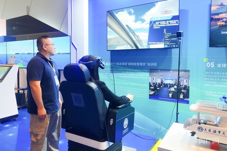 在2025大连航商大会的展厅里,专业级VR船舶驾驶模拟器前围满了体验者。这套1:1还原大连港航道实景的系统,将海浪颠簸、码头调度等真实场景搬进虚拟空间,航海新手经其培训考核合格即可登船实操,不仅把岗前培训周期从3个月压缩至15天,还彻底规避了实操风险。