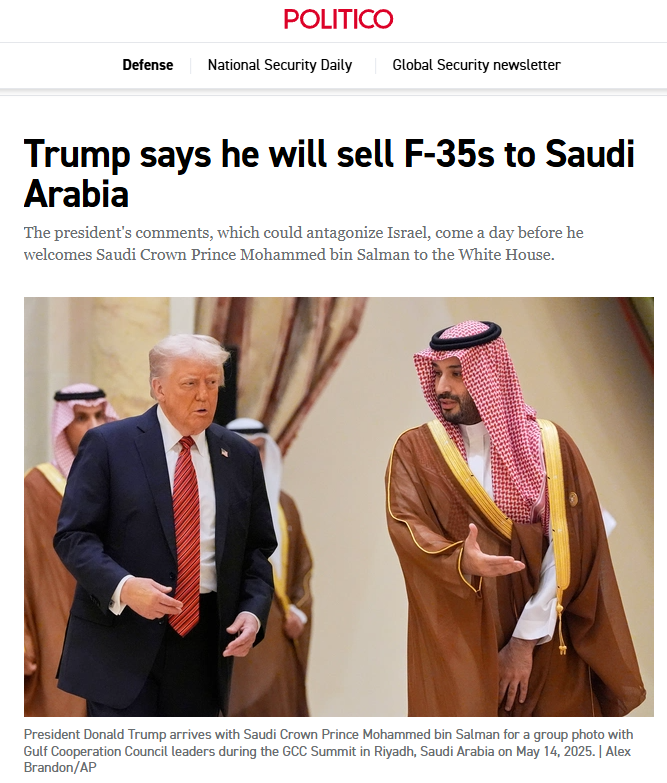 当地时间18日,美国总统特朗普表示,已就防务条约与沙特阿拉伯达成协议,沙特将成为中东地区除以色列之外首个获得F-35战机的国家。