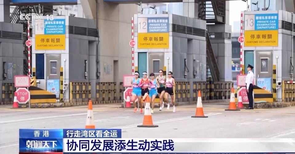 而本届全运会,大湾区深度融合再添生动实践。在深圳湾口岸,参加全运会首次跨境马拉松的运动员们就是从这里跑向香港。在起点进行前置查验后,运动员们只需佩戴配有北斗定位芯片的手环后,就可无感、不停脚步地通关。