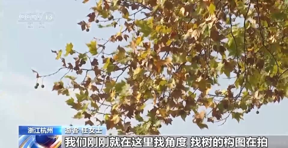 游客 任女士:我们刚刚就在这里找角度,找树的构图拍照。杭州这个城市给人的感觉特别特别舒服,我和朋友说我好喜欢这里,好想留在这里。