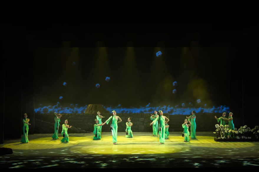 The original audio-visual poetry and dance drama “Living by the Huaihe River” debuted at Bengbu Cultural Theater on the evening of November 20. As a project supported by national intangible cultural heritage (ICH) protection funds and Bengbu’s 2024 “Cultural Power City” funding program, it stood out as a brilliant cultural highlight on the eve of the industrial conference, attracting conference participants, tourists, and local residents.