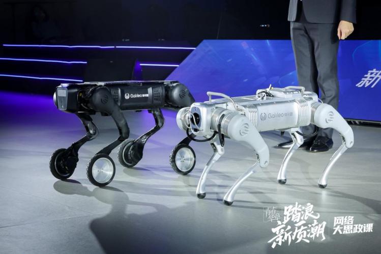 伽利略机器狗展示跳跃站立互动。(主办方供图)