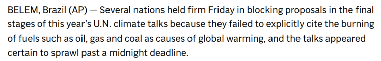 中国现代国际关系研究院世界政治研究所副研究员韩一元分析认为,各缔约方在逐步淘汰化石燃料路线图问题上以及发达国家为发展中国家筹集资金方面存在分歧,是导致本届大会陷入僵局的主要原因。