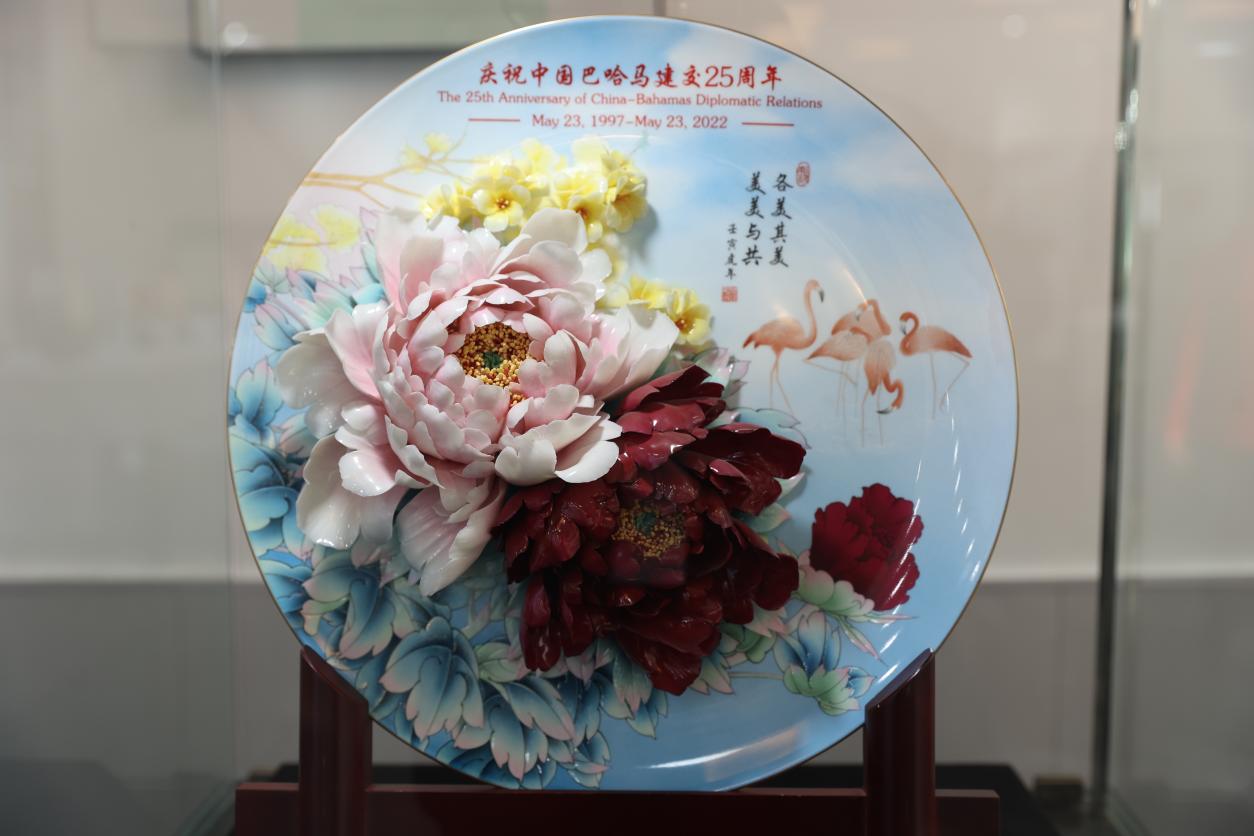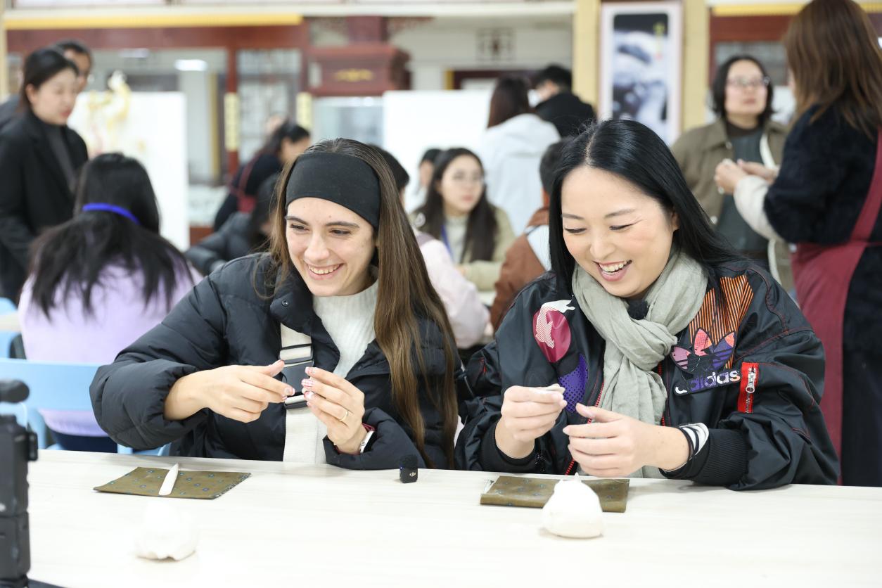 Dans l'atelier de Li Xuewu, spécialiste de la porcelaine de pivoine, les invités sont captivés par la délicatesse des pivoines en porcelaine.