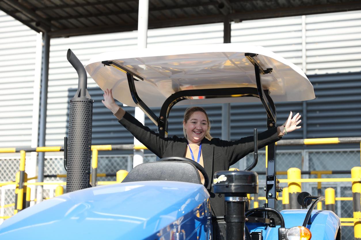 Dans la zone d'essai de YTO (China First Tractor Group), l'influenceuse russe Shchekina grimpe avec enthousiasme sur un tout nouveau tracteur : « Ce matin nous admirions la profondeur historique des grottes millénaires, et cet après-midi nous testons la puissance de l'industrie manufacturière moderne de la Chine. Cette experience, c'est dément ! »