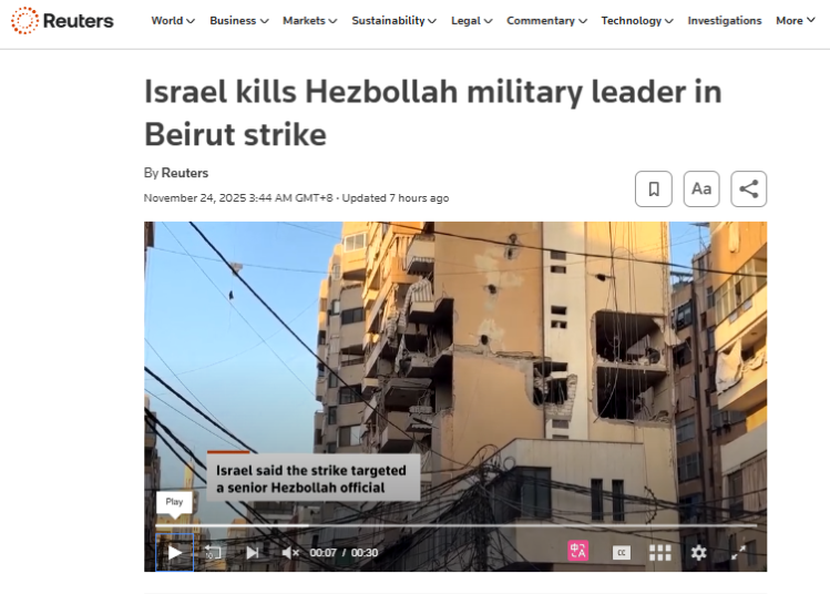 以色列此次定点清除并不是一个孤立的事件,而是近期对黎巴嫩真主党系统性军事打击的延续和升级。以色列一直将真主党视为比哈马斯更为强大的安全威胁。此次定点清除的直接目的是瘫痪真主党的军事后勤和削弱其重整旗鼓的能力,这与之前清除真主党高级军事指挥官乃至领导人纳斯鲁拉的行动一脉相承,旨在通过“斩首行动”瓦解真主党的指挥系统。