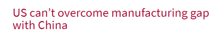 澳大利亚《战略家》杂志(The Strategist)24日发表题为《在制造业领域 美国无法超越中国》的文章。文章说,美国不应自欺欺人,在可预见的未来,它不可能在制造业领域超越中国。