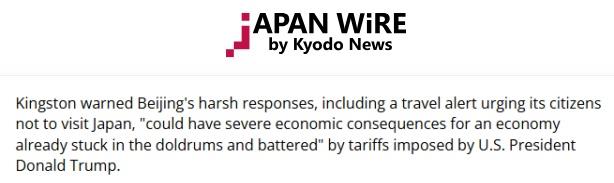 日本共同社近日的一篇报道指出,日中关系近期急剧恶化已开始影响包括旅游、贸易、教育和娱乐等日本各类产业。报道援引东京天普大学教授杰夫·金斯顿的观点称,中方的严厉反制,可能会对已经陷入低迷并受到美国关税打击的日本经济产生严重的后果。