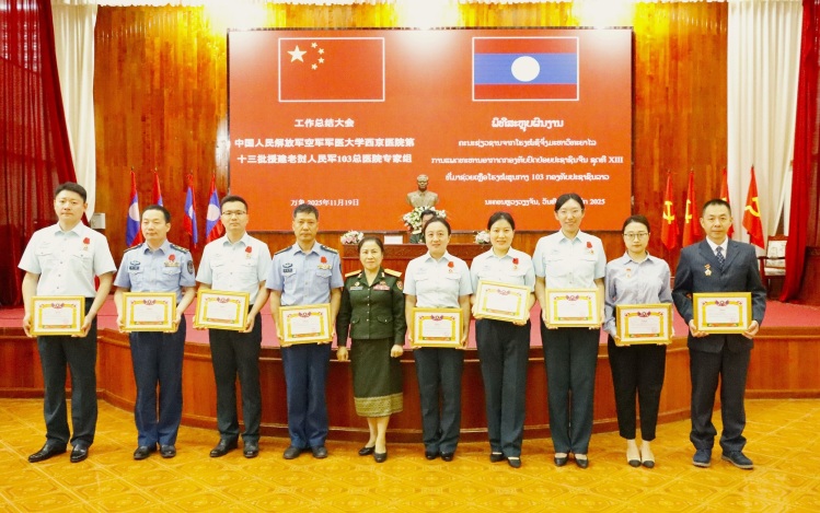 波星准将在致辞中说,中国医疗队与老挝人民军103医院精诚合作,在医疗保障、临床带教和护理培训等领域取得了丰硕成果,成功完成了老挝首例脑深部电极植入术等高难度手术,填补了多项技术空白,显著提升了医院的竞争力和影响力。医疗队秉持优良作风,为推动老中命运共同体建设作出了突出贡献。老中两国两军将继续携手前行,构筑更健康更美好的明天。