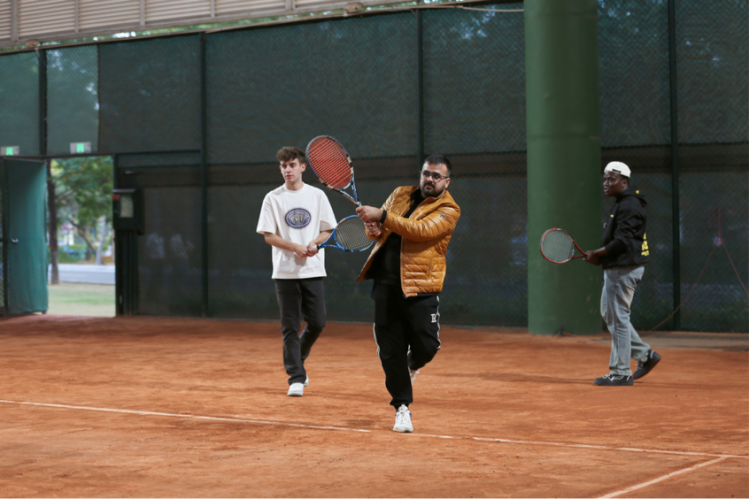 Zhang Hao, a Generation Z foreign youth from Bangladesh, exchanging tennis skills Photo by Huang Shi