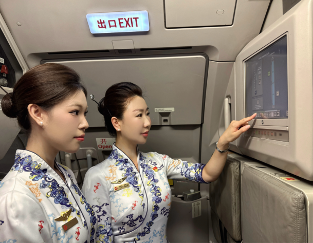 救援的15分钟,每一秒都像一个世纪那样漫长,是与时间的激烈赛跑,更是对乘务组专业与初心的严峻考验。回忆起当时的情景,李龙凤说道:“我能清晰感觉到老人的手在微微颤抖,也能听到自己因紧张而加速的心跳,但脑海里只有‘不能放弃’这四个字——这不仅是公司‘安全第一、生命至上’的铁律,更是我们身为新海航人,对每一位信任我们的旅客许下的郑重承诺。”终于,在持续的供氧与呼唤中,老人的眼皮开始颤动,缓缓苏醒过来,血氧饱和度也逐步回升至99%的安全水平。当天航班平稳落地后,李龙凤搀扶老人下机,并亲手将他交到地面急救人员手中时,老人同行家属对机组人员和医护人员反复道谢:“多亏你们发现得及时、处置得专业,要不是你们,后果真的不堪设想!”