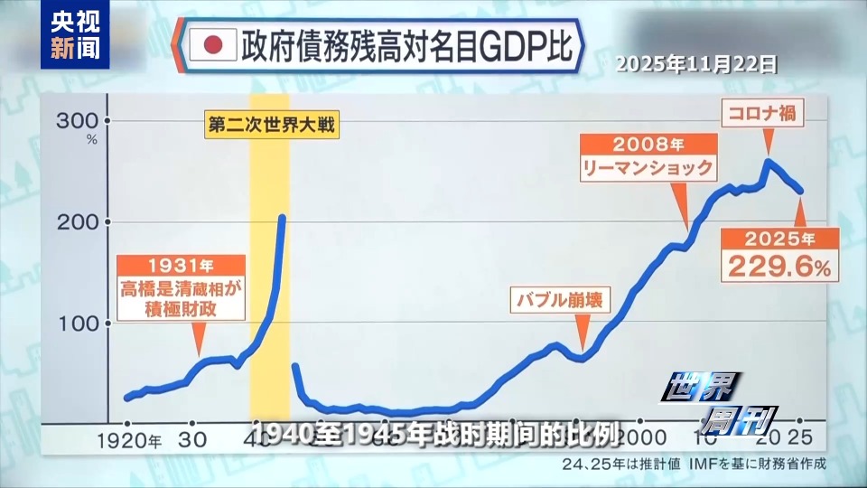 巴黎银行证券全球市场部副会长 中空麻奈:政府债务占名义GDP的比例在2025年已超过200%,这个数字已经超过了1940至1945年战时期间的比例。