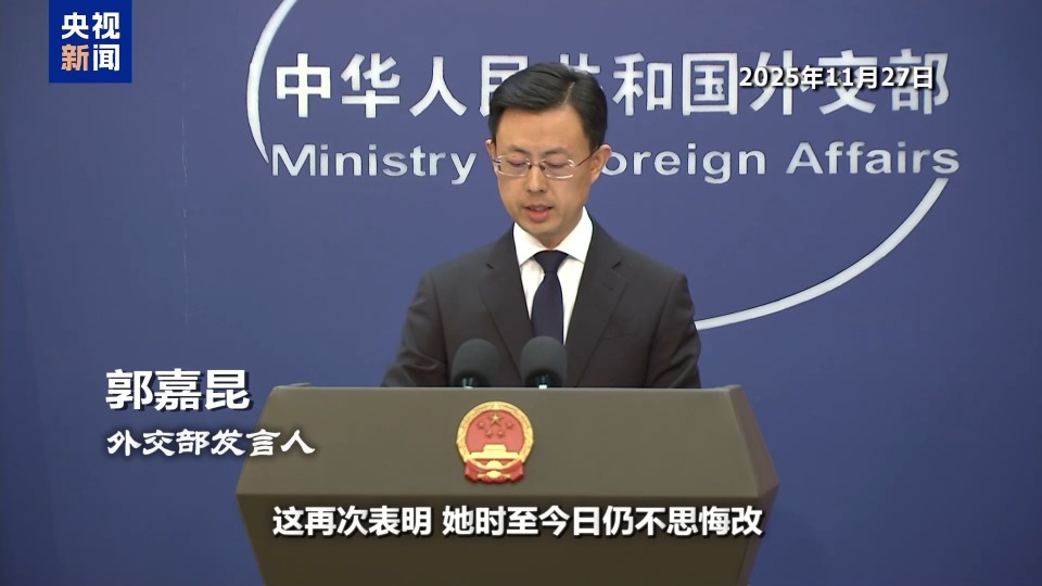 外交部发言人 郭嘉昆:这再次表明,她时至今日仍不思悔改,仍在持续损害中日四个政治文件精神确定的中日关系政治基础,无视联合国权威,公然挑战战后国际秩序和国际法基本准则,甚至妄图煽炒所谓“台湾地位未定论”,这是错上加错。