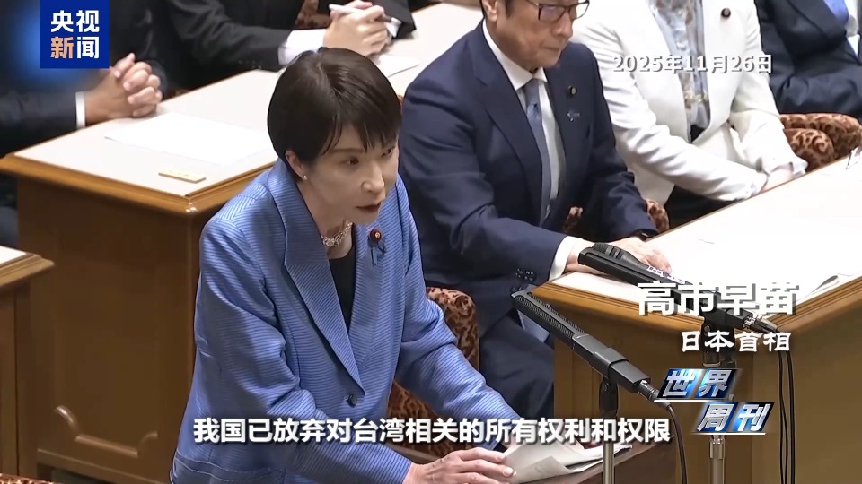 日本首相 高市早苗:根据“旧金山和约”,我国已放弃对台湾相关的所有权利和权限。因此我国不具备对台湾法律地位进行认定的立场。