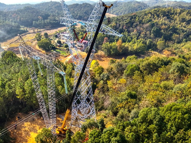 As a key ultra-high-voltage transmission interconnection line between Hubei and Jiangxi, the 500 kV Huangyong Line is undergoing a critical technical upgrade. On November 26, in Yatang Village of Yongxiu County, Jiujiang, construction personnel from Jiangxi Power Transmission and Transformation Company carried out the erection of Tower No. 426 of the 500 kV Huangyong Line. The renovation replaces the original guyed tower with a self-supporting four-leg tower, bringing the tower’s weight to approximately 12 tons. The upgraded structure offers greater stability, significantly enhances the line’s resistance to ice accumulation and galloping, and improves operational reliability under complex weather conditions—providing strong support for Jiangxi’s power grid during the winter peak period.