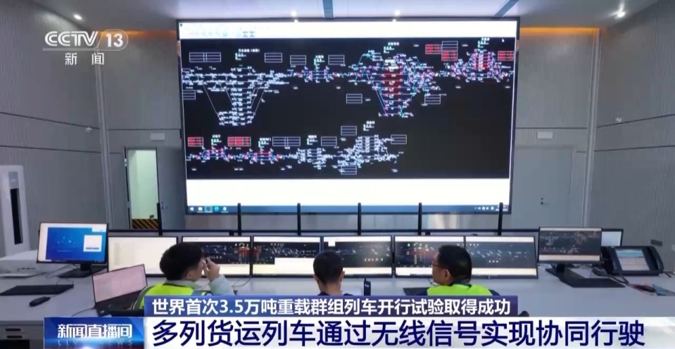 今天(8日),世界首次3.5万吨级重载群组列车开行试验在内蒙古包神铁路取得成功。这是全球首次实现多列货运列车不靠机械挂钩、仅靠无线信号就实现协同行驶。