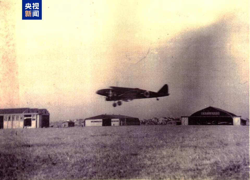 △七三一部队飞机在南京一六四四部队的飞机场上空飞行(图片由侵华日军第七三一部队罪证陈列馆提供)