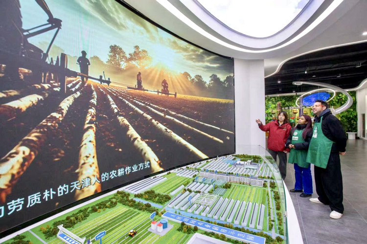 除了传统展区,科普馆里还摆放着很多新鲜设备,自行车、智能大屏、太空舱应有尽有,国际青年体验了“太空舱”,踩着动感单车“漫游”园区,还参加了在线种植农作物比赛。“完全没想到,现代农业能在天津武清的乡村园区里以这样‘智慧感十足’的形式呈现。”
