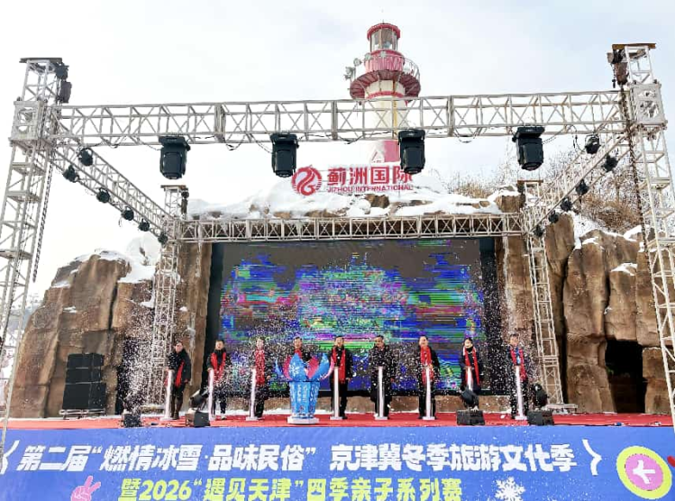 12月28日,第二届“燃情冰雪·品味民俗”京津冀冬季旅游文化季暨2026“遇见天津”四季亲子系列赛活动启动仪式在蓟洲国际滑雪场举行。活动以冰雪为纽带、民俗为内核、亲子为亮点,联动京津冀三地文旅资源,搭建跨区域合作平台,为后冬奥时代冰雪经济发展注入新活力,向广大游客献上一场覆盖全龄段、兼具趣味性与人文温度的冬季文旅盛宴。