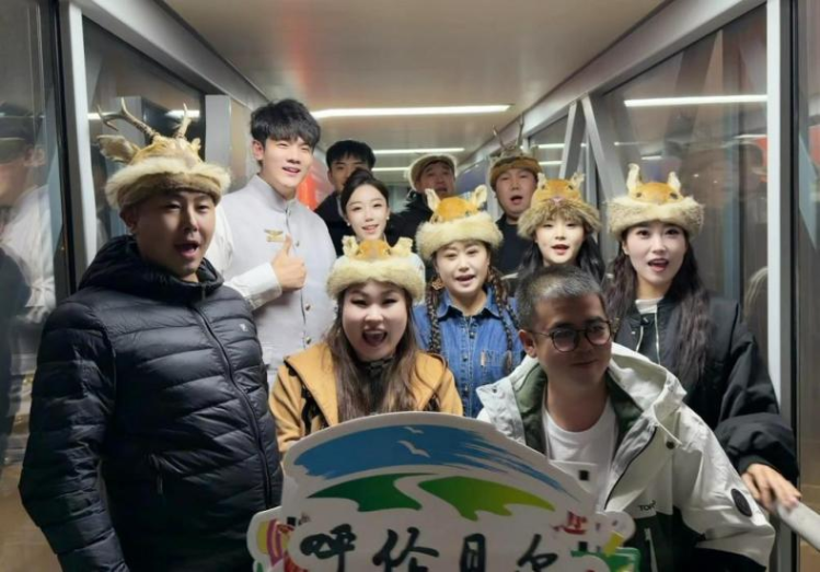 鄂伦春族非遗宣传队旅客与乘务组合影