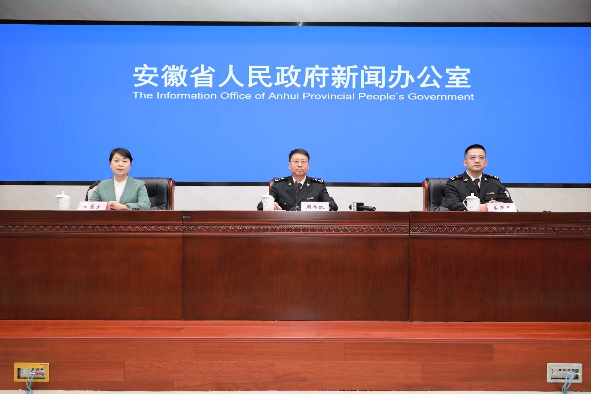1月15日, 2025年安徽省外贸情况新闻发布会在安徽省行政中心举行。合肥海关关长周荣球、副关长姜开源出席发布会,通报2025年安徽省货物贸易进出口情况。