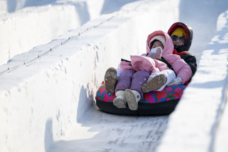 2026年1月1日,人们在2026第八届哈尔滨松花江冰雪嘉年华园区内体验冰雪娱乐项目。新华社记者 张涛 摄