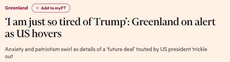 1月23日,英国《金融时报》刊发题为《“我受够了特朗普”:美国虎视眈眈,格陵兰保持警惕》的报道。
